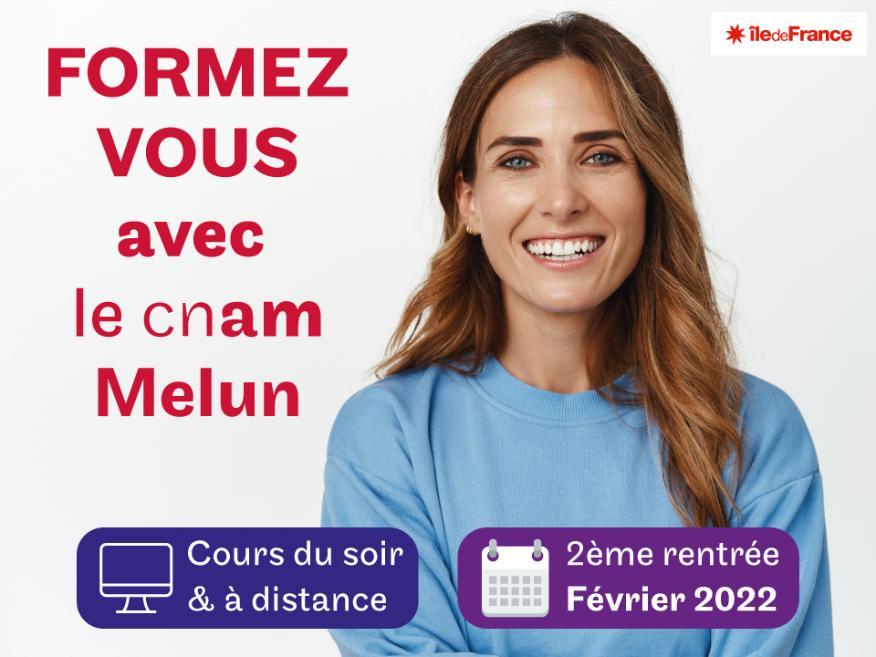 En janvier/février, le CNAM de Melun ouvre les inscriptions de ses cours pour sa deuxième rentrée. Accessibles de niveau bac à bac+5 et délivrés le soir, le samedi matin et/ou en ligne, les cours permettent à chacun de concilier au mieux activité professionnelle et reprise d’études supérieures. Les cours débuteront à partir du 14 février 2022.