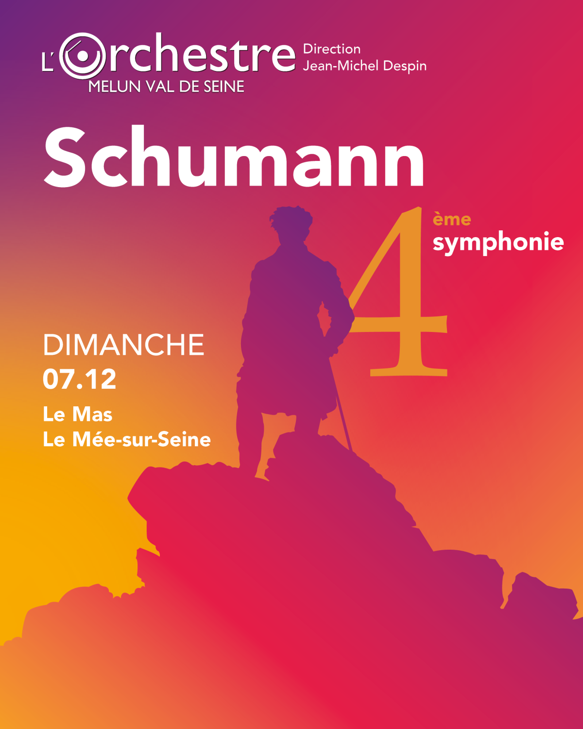 L’Orchestre Melun Val de Seine dans sa grande formation symphonique et son chef, sont émus et heureux de proposer au public de la salle Michel Dauvergne, qu’ils connaissent si bien, un phare du répertoire romantique. On entre dans ce chef d’œuvre comme dans un édifice monumental, fascinant et intimidant.